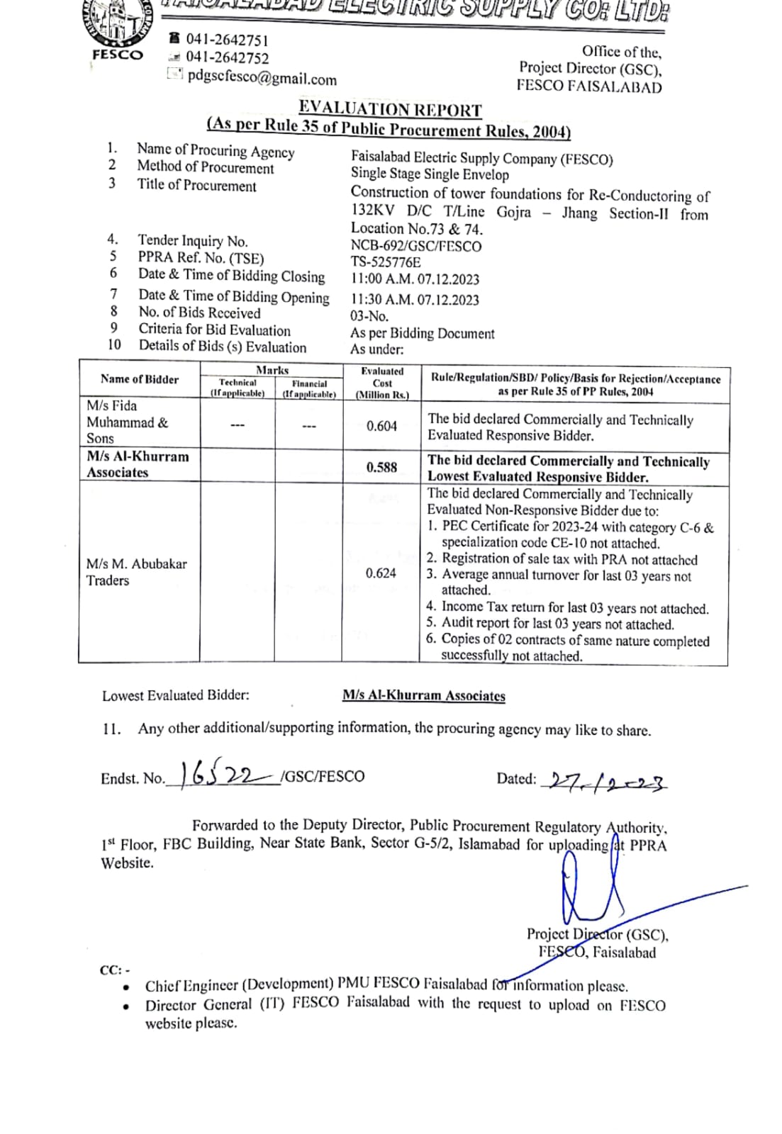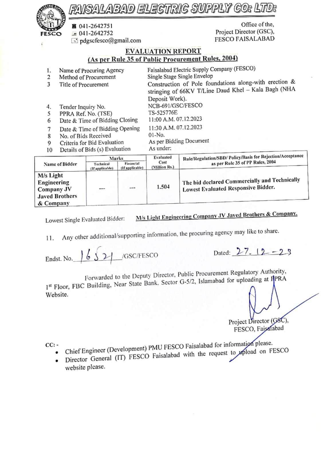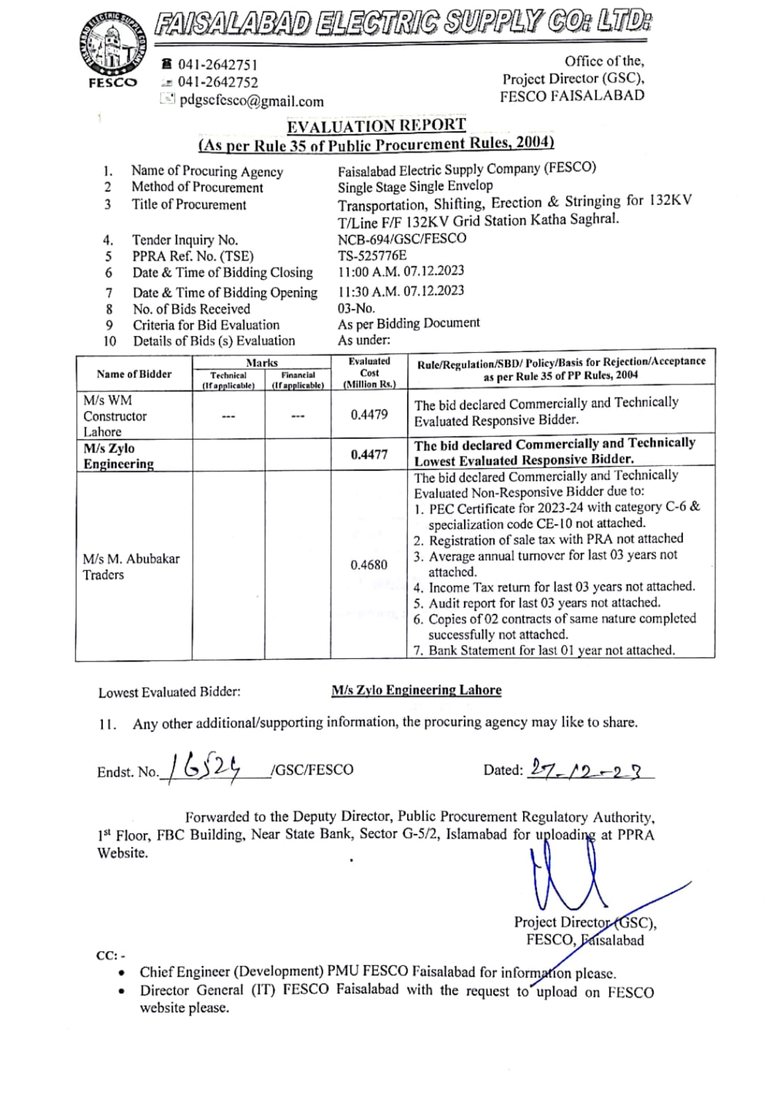 Tender No.ER-709GSC(Uploaded on dt:-01-02-2024)