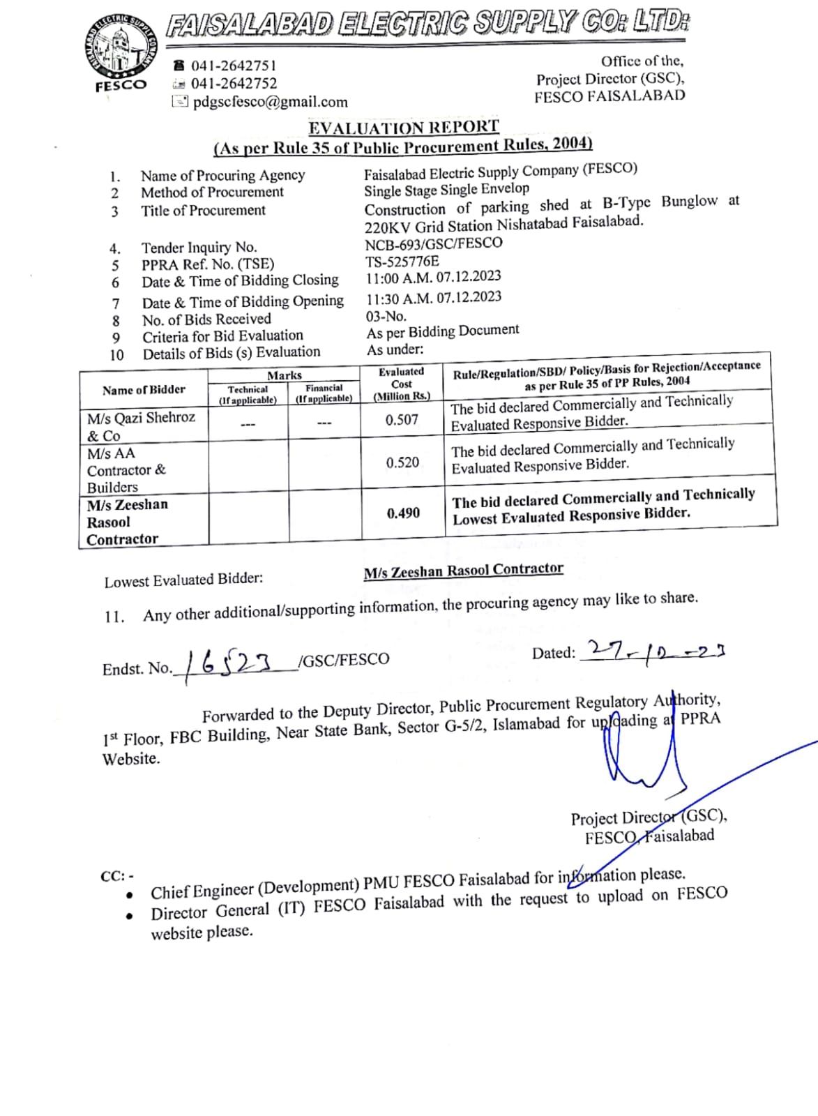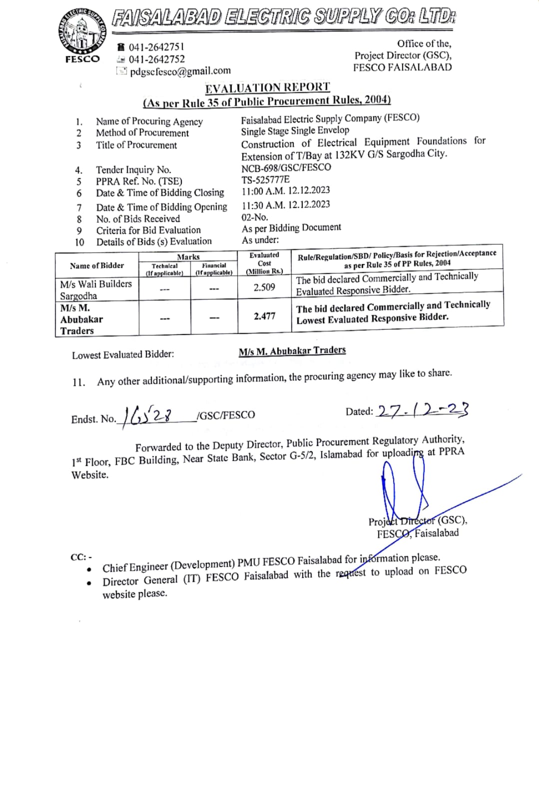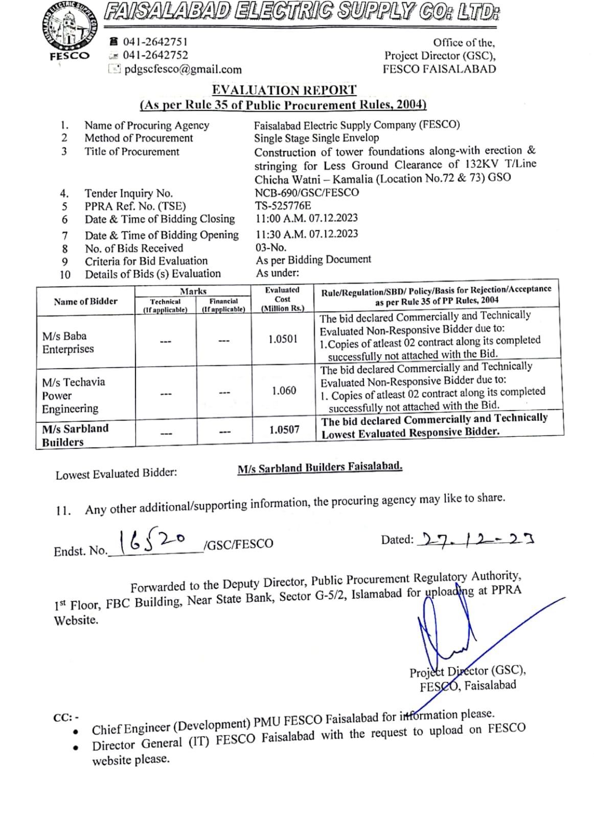 Tender No.ER-709GSC(Uploaded on dt:-01-02-2024)
