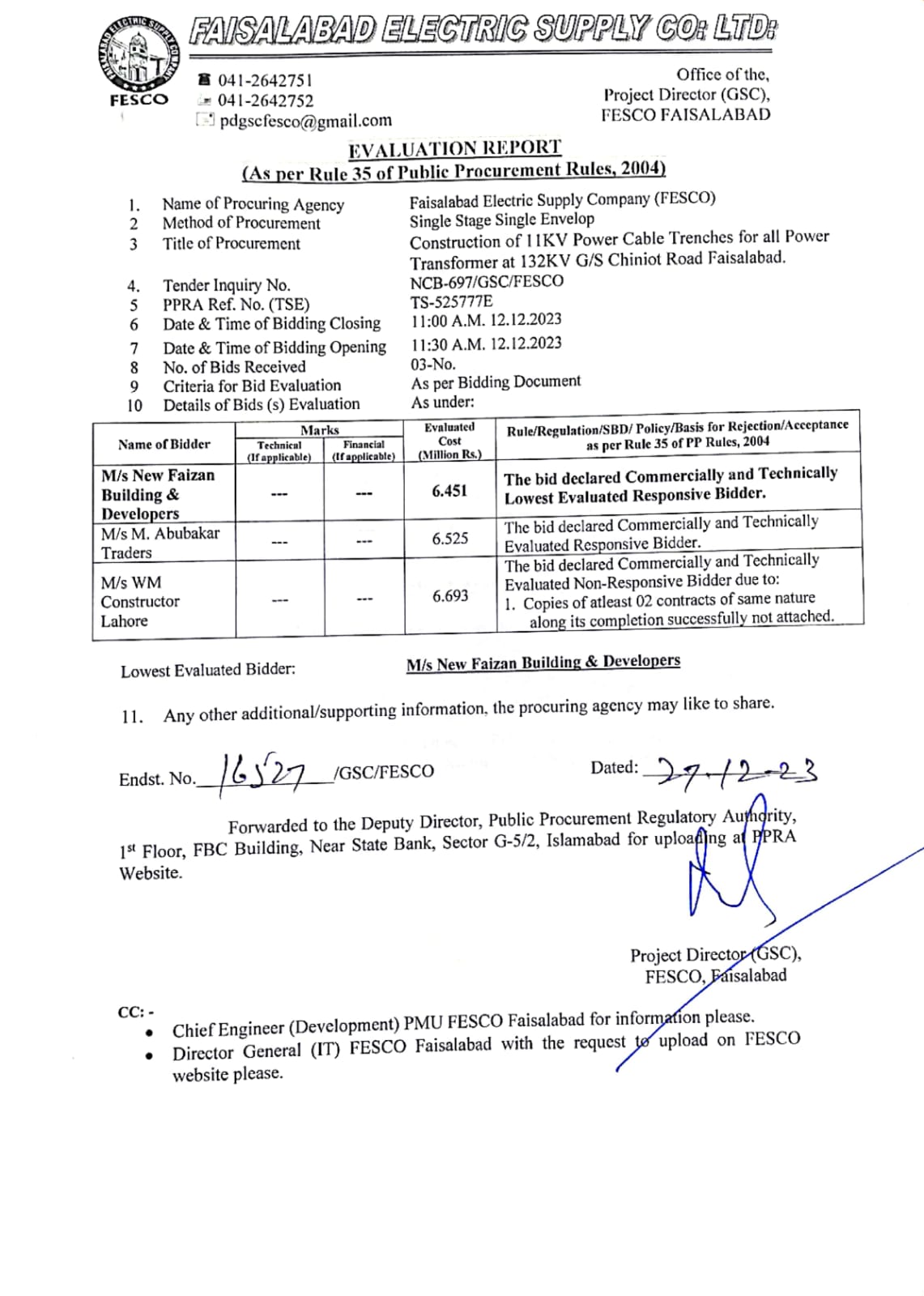 Tender No.ER-697GSC(Uploaded on dt:-01-01-2024)